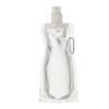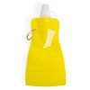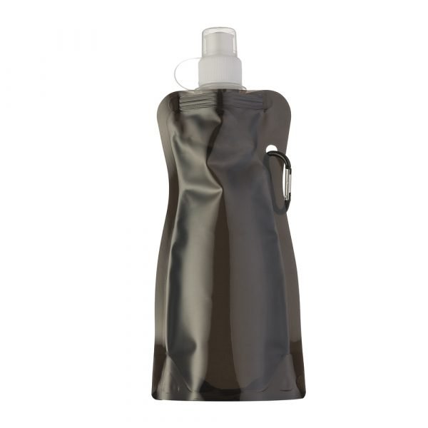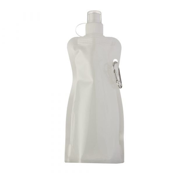 Squeeze dobrável de plástico com 480ml. Squeeze colorido acinturado com mosquetão superior de acordo com a cor do squeeze, possui tampa de bico texturizada e protetor plástico para o bico(com alça).