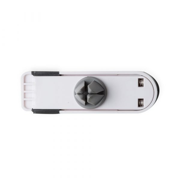 Suporte veicular com haste regulável e garra de encaixe. Suas extremidades emborrachadas evitam o deslizamento do celular.
