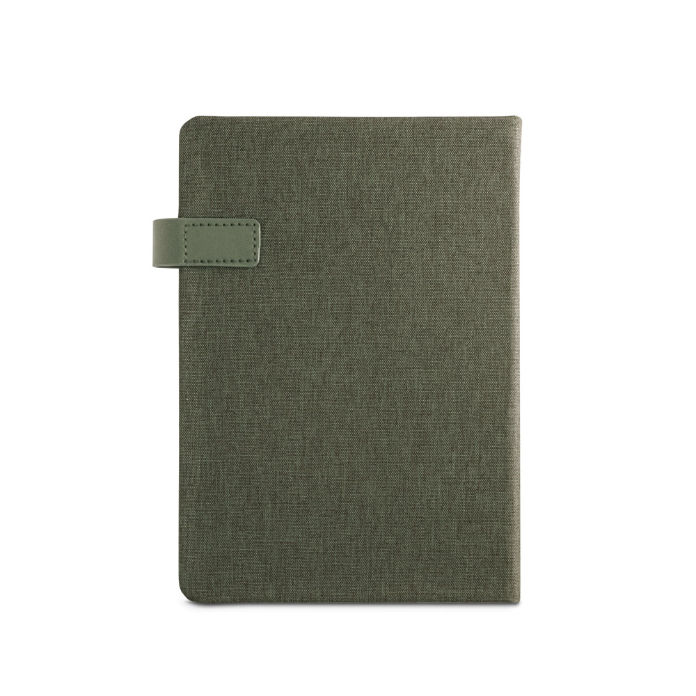 Agenda 2026 A5 em tecido poliéster com suporte para caneta, marcador em fita e plano diário. Prática, resistente e ideal para sua rotina.Dimensão: 145 x 212 mm