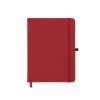 Caderneta emborrachada com porta caneta em nylon, marcador de página em cetim e fita elástica para lacre. Contém aproximadamente 80 folhas pardas com pauta.