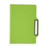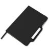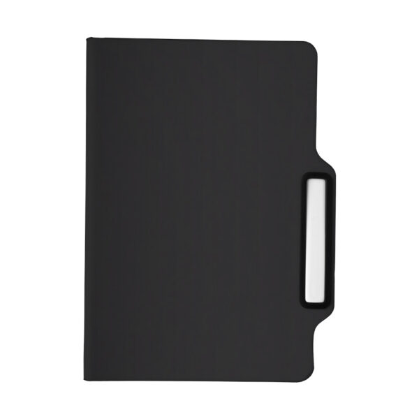 Caderno com capa dura em PU e suporte para caneta. Miolo não pautado com 80 folhas brancas. Acompanha caneta/lápis infinito de ponta dupla em plástico.