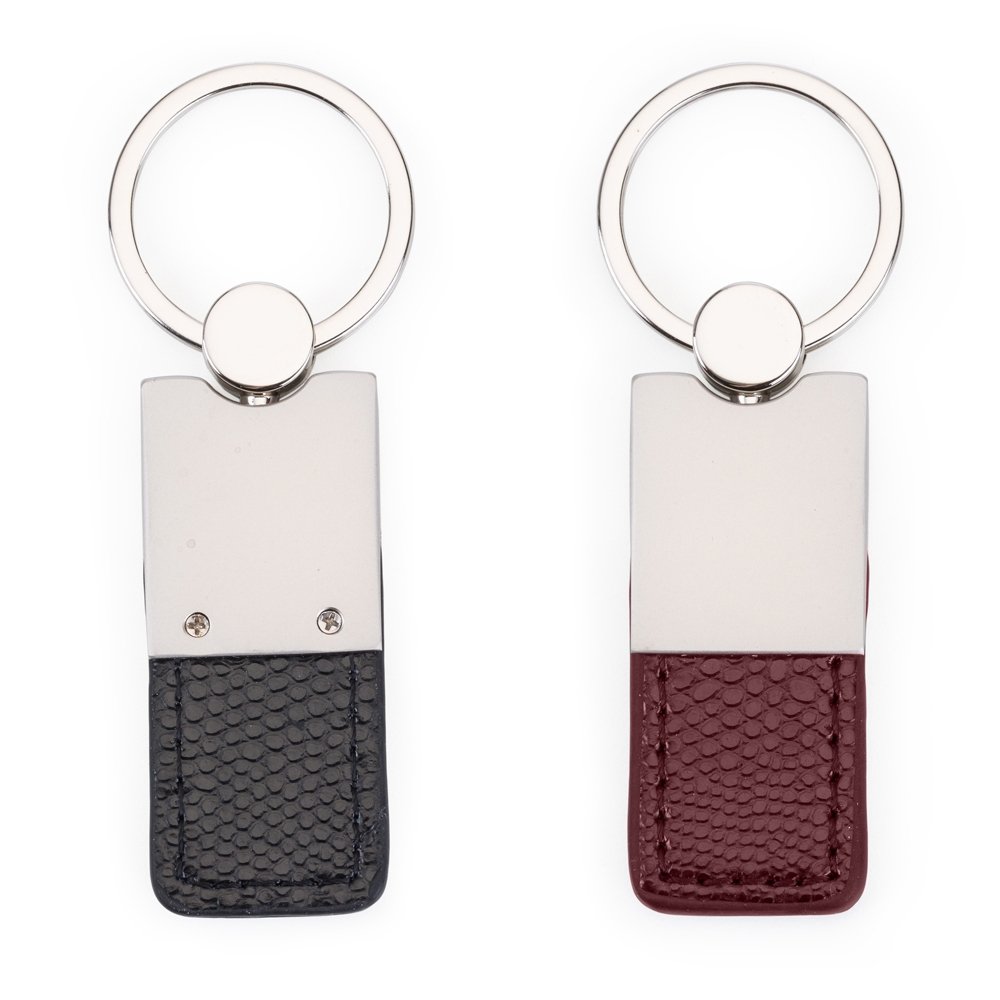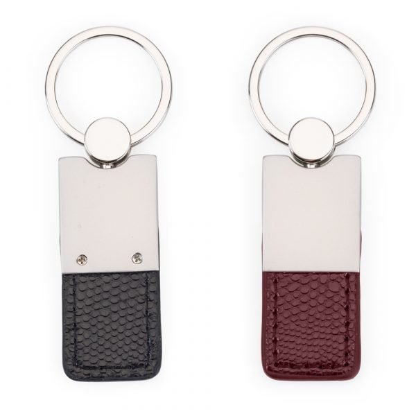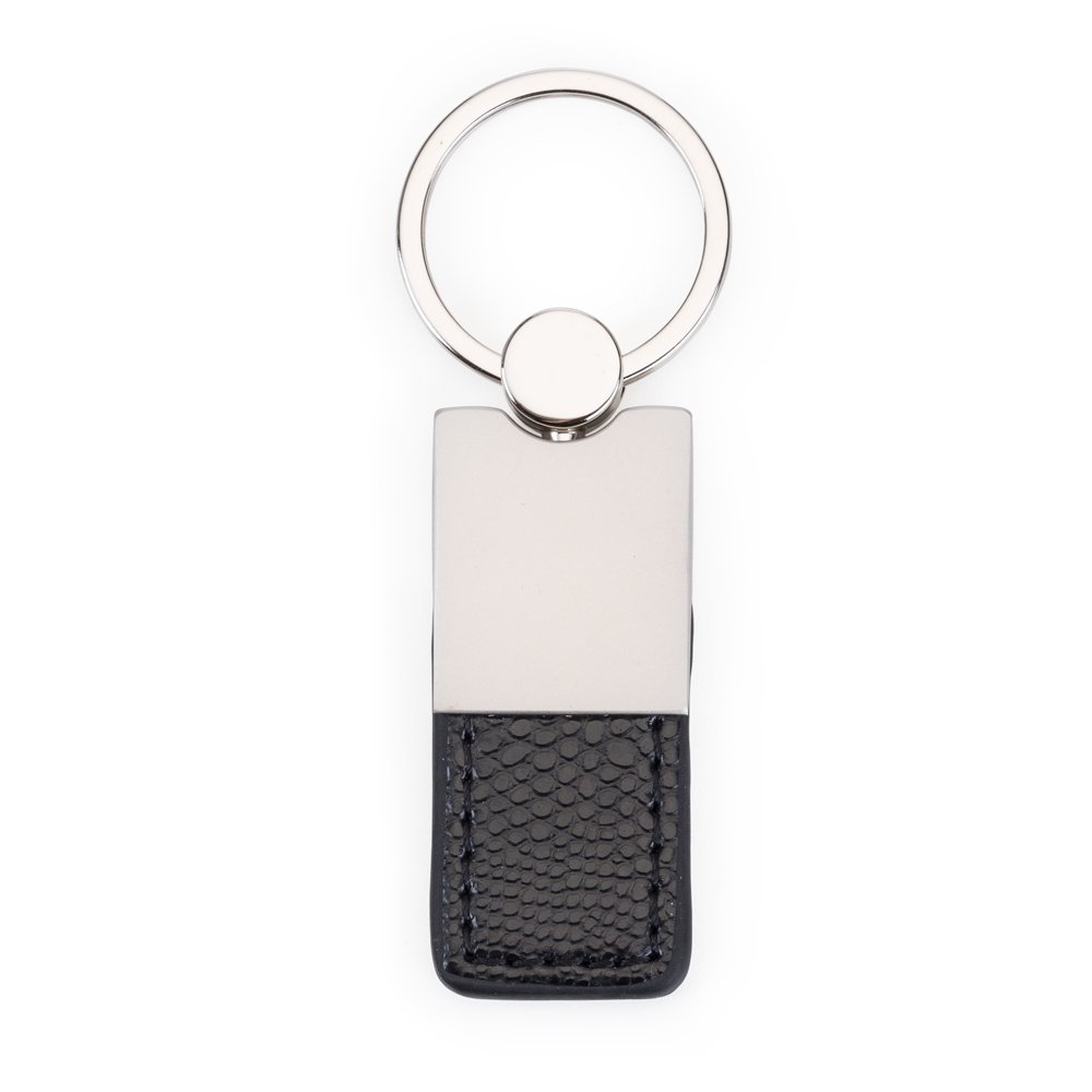Chaveiro metal fosco com detalhe inferior emborrachado.