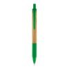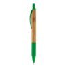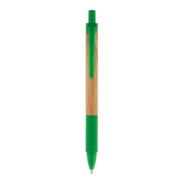 Esferográfica em bambu com antideslizante, clipe e ponteira de plástico.