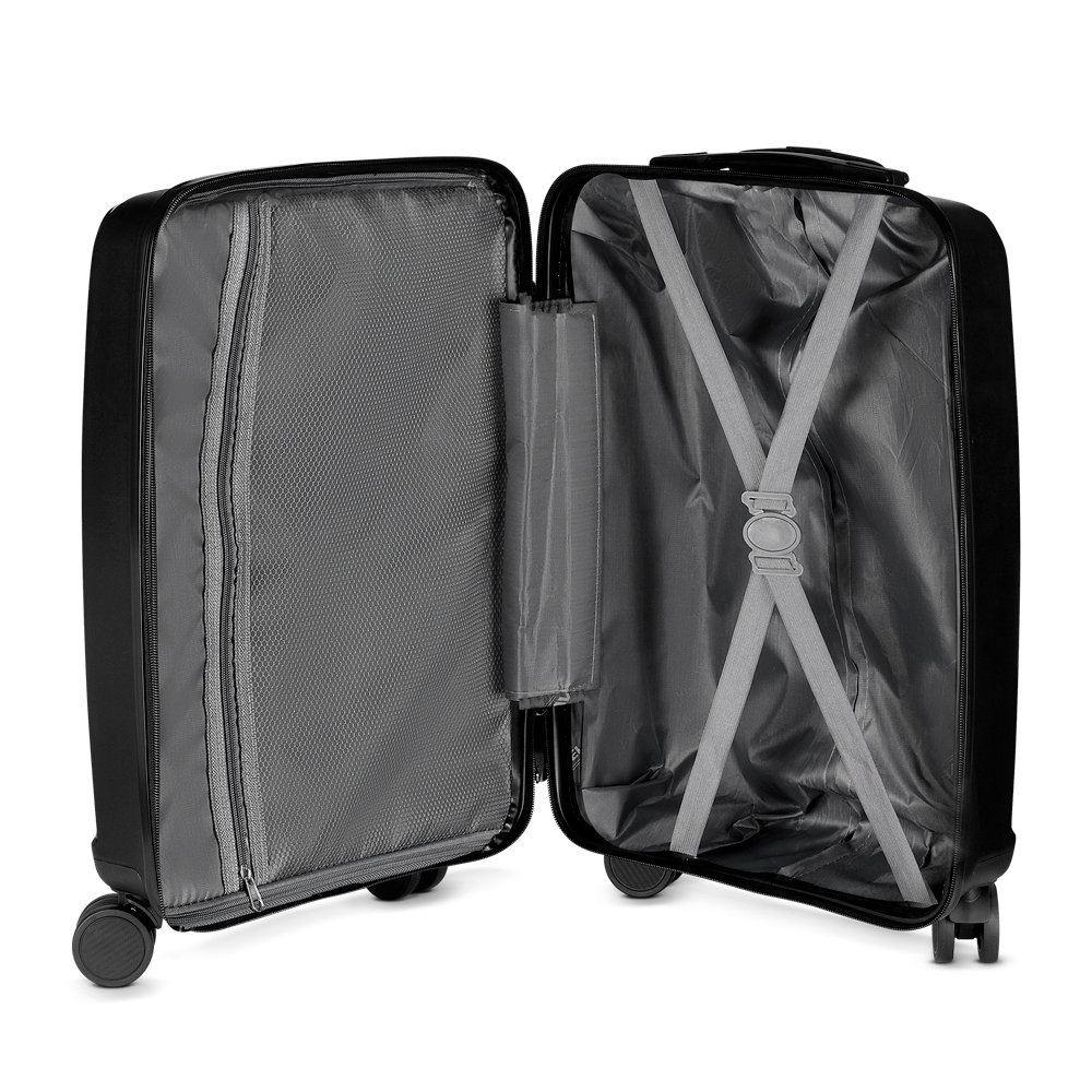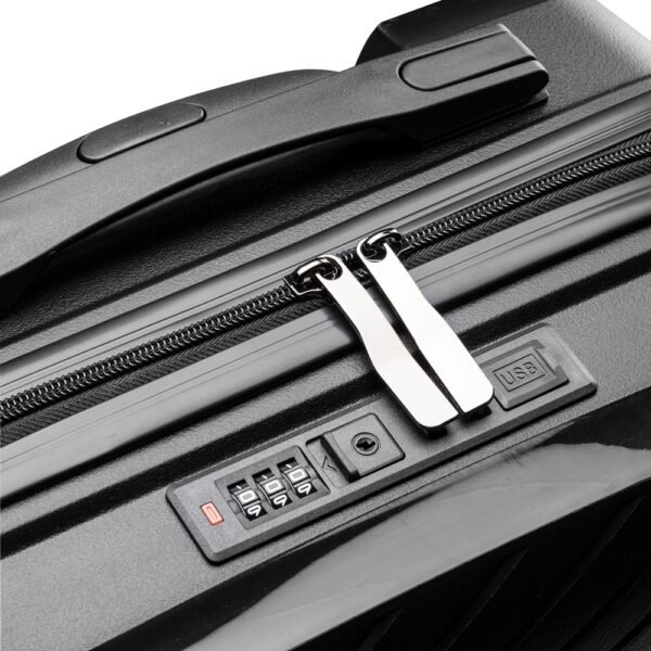 Mala de viagem de 42 litros, equipada com cadeado numérico TSA. Conta ainda com três compartimentos, sendo um deles com cinta compressora para manter tudo no lugar, e três bolsos, incluindo um de tela. Também conta com alça de mão, puxador retrátil ajustável e rodinhas 360º. Tem também um suporte externo USB.