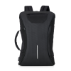 Mochila Pasta para Notebook em tecido poliéster. Bolso frontal com ziper; Alça de mão e ombro acolchoadas; Alça lateral; Conector USB na lateral. Compartimento para notebook; Porta Tablet; Porta Canetas.