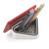 Suporte multifuncional para celular, porta-lápis e porta-clipes. Prático e versátil, ideal para organização do escritório ou home office.